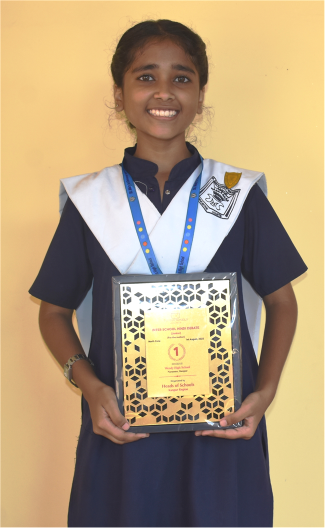 DISHITA GUPTA STUDENT OF CLASS 9-B SECURED 1st POSITION IN ICSE HINDI DEBATE COMPETITION (NORTH ZONE) ORGANISED BY WENDY HIGH SCHOOL, NARAMAU KANPUR