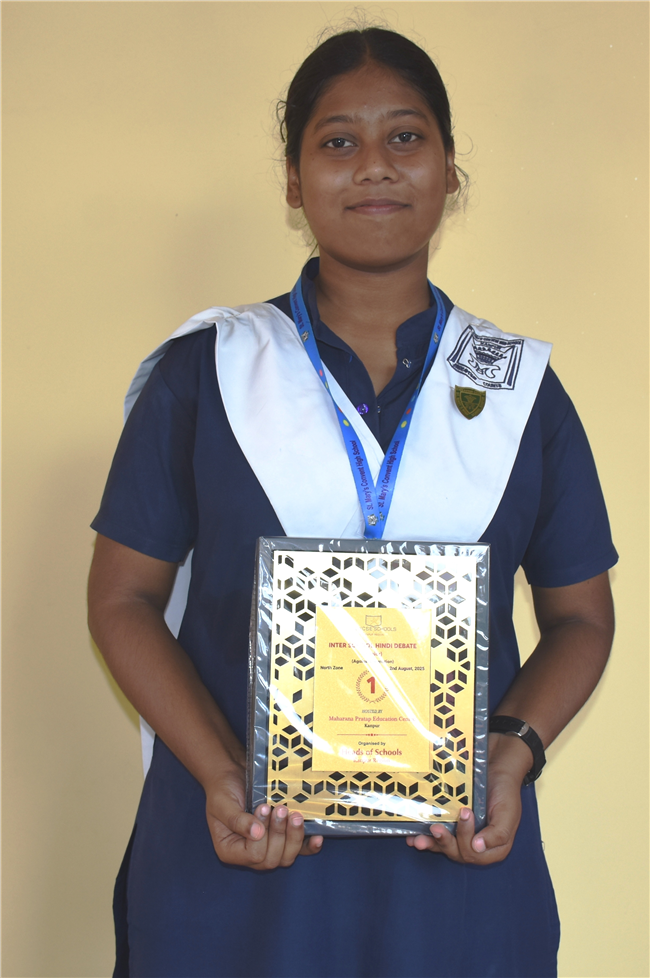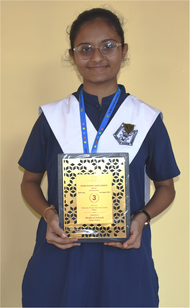 KASHVI NIGAM STUDENT OF CLASS 11-C SECURED 1st RANK IN HINDI DEBATE COMPETITION HOSTED BY MAHARANA PRATAP EDUCATION CENTRE, KANPUR